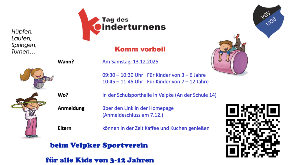 Die Erwachsenen bringen bitte etwas Geld für Kaffee und Kuchen mit. 😉 und ggf. Hallenschuhe, wenn Sie mal kurz zuschauen wollen.