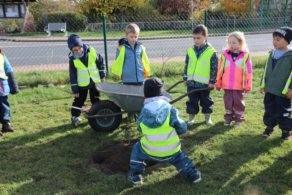 Am 15.10.2025 gab es wichtigen Besuch beim Velpker Sportverein. Grund war die Baum-Challenge mit den Wiesenpiepern aus der Kita Lummerland in Velpke. Wie euch Lesern sicherlich bekannt ist, handelt es sich bei der Challenge um eine Social Media Aktion die Vereine, Organisationen und andere Gruppen nominiert einen Baum zu pflanzen. Der VSV sah hier eine tolle Möglichkeit mit den Kitas so etwas zu unternehmen.