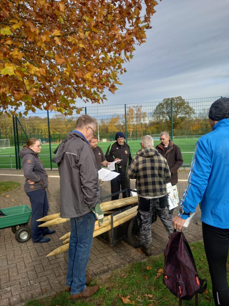 Nach Eingang des Bewilligungsbescheides konnten wir loslegen: die Übersichtstafel und die Stationsschilder wurden bestellt, das weitere Material besorgt. Helge und Grisu haben einiges an Vorarbeit geleistet, so dass am 01.11. bei einem Arbeitseinsatz die Schilder aufgestellt werden konnten. Dem Aufruf sind 14 VSV-Mitglieder, allesamt gut ausgerüstet, gefolgt um ehrenamtlich zuzupacken.