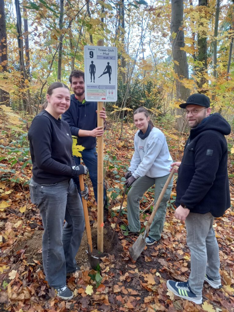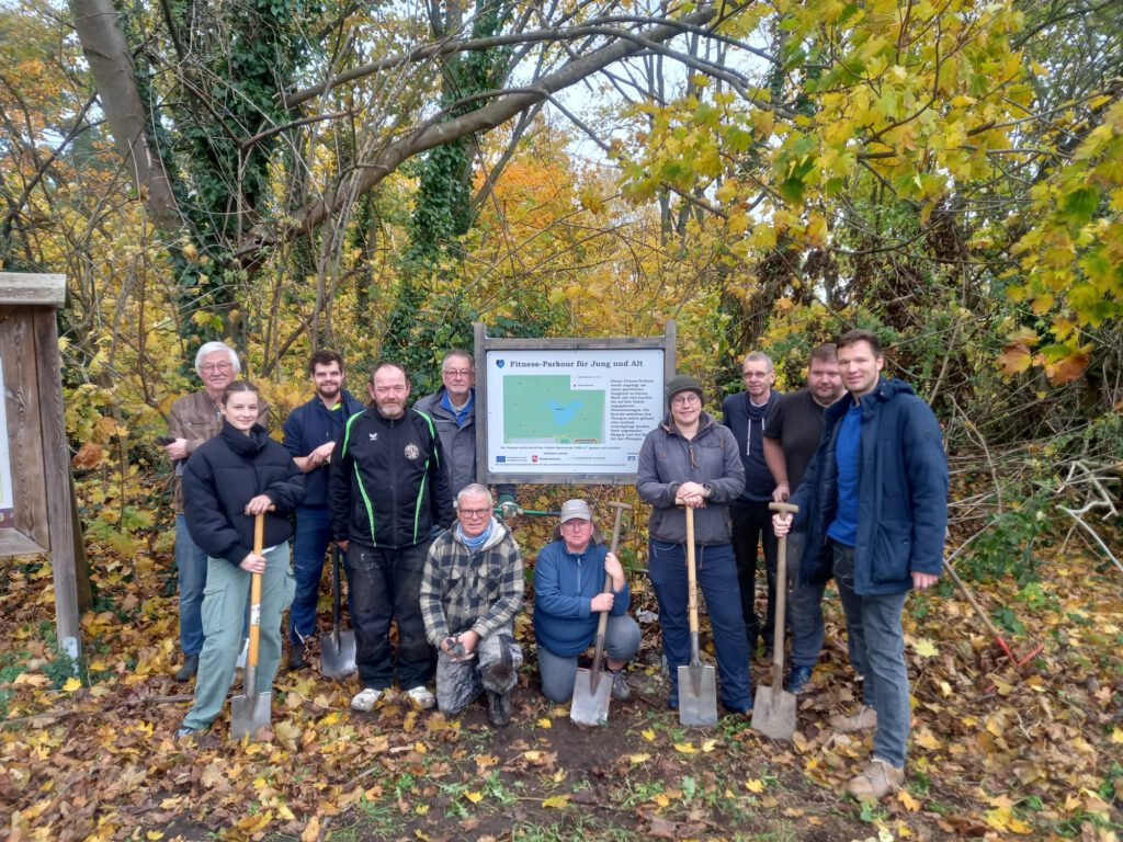 Am Samstag, 08.11. wurde der Parkour dann eingeweiht. Neben unseren drei Vorsitzenden haben sich der Bürgermeister Mark Kreutzberg, der Gemeindedirektor Calvin Spaleck, die Presse und auch einige interessierte Bürger zu früher Stunde eingefunden. Nach den Eröffnungsworten durch Verein und Gemeindevertreter ging es gemeinsam auf die Runde. An den Stationsschildern wurden die Übungen erklärt und von den Teilnehmern durchgeführt. Da die man die Intensivität individuell anpassen kann, konnte der jüngste TN und die Seniorinnen ebenso mithalten wie auch die geübten (Profi-)Sportler.